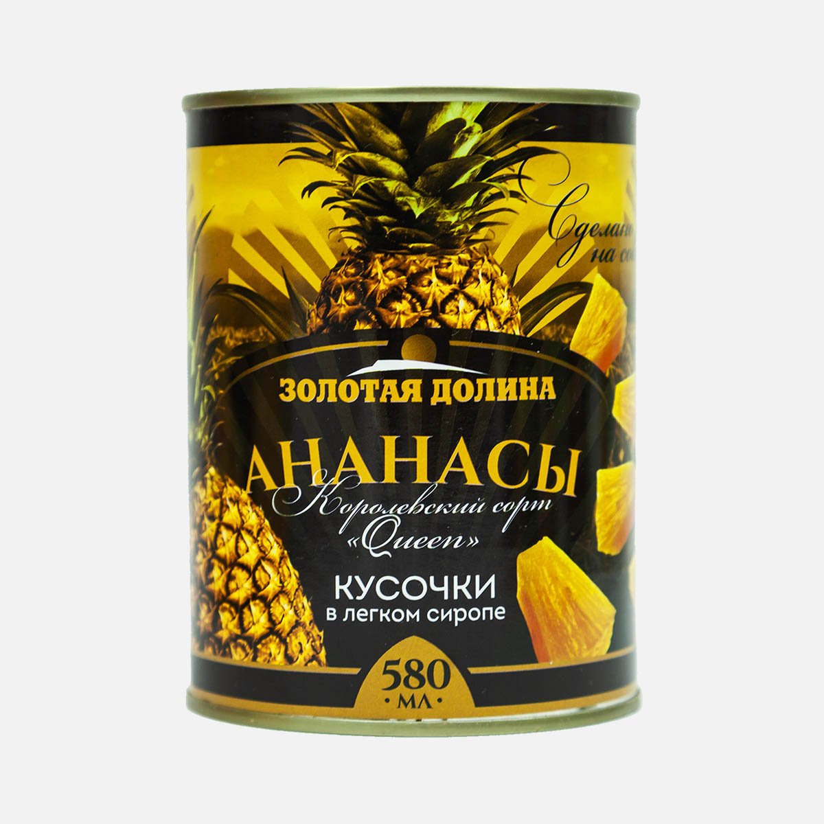 Ананасы Золотая долина кусочки в легком сиропе ж/б 565г