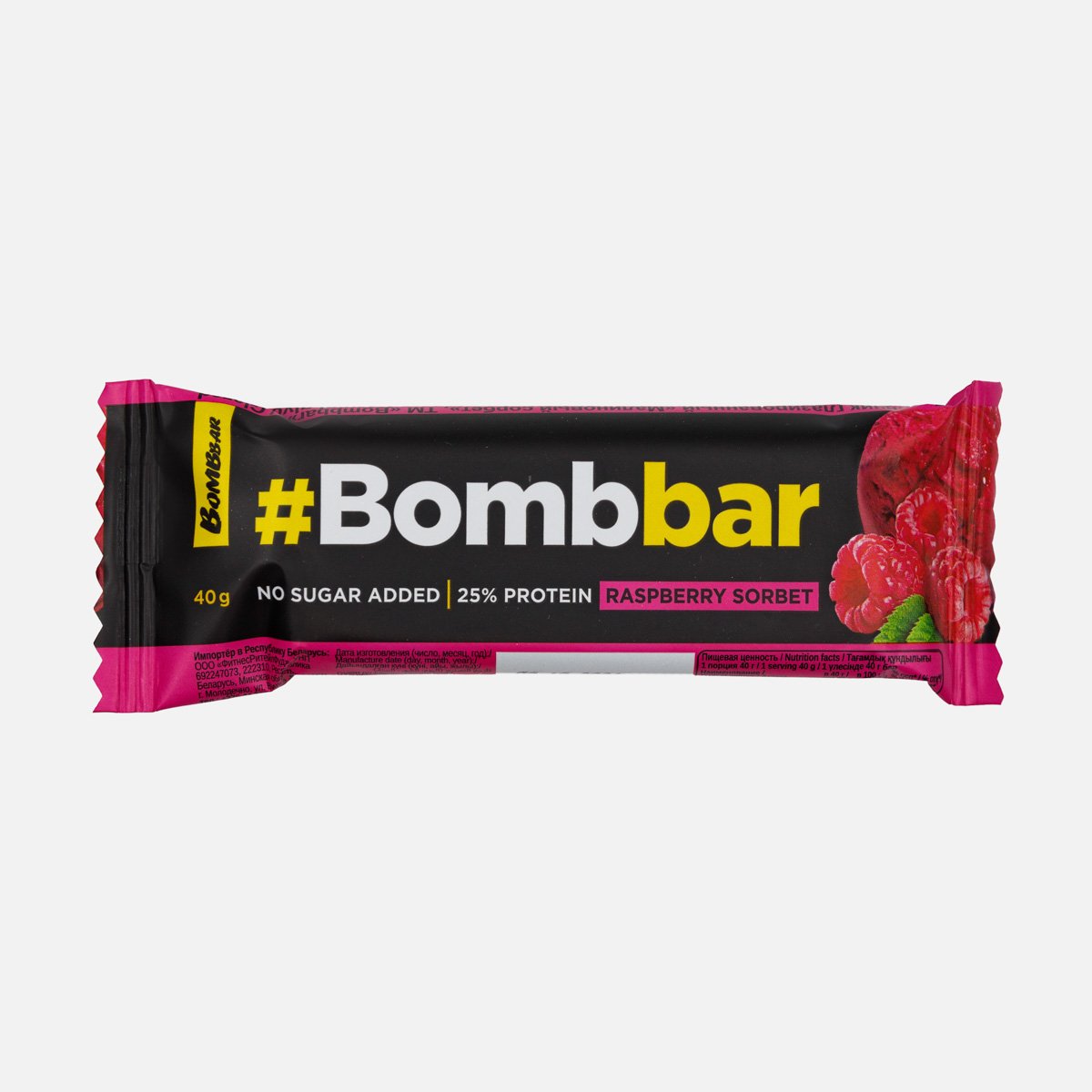 Батончик Бомббар Малиновый сорбет глазированный протеиновый 40г