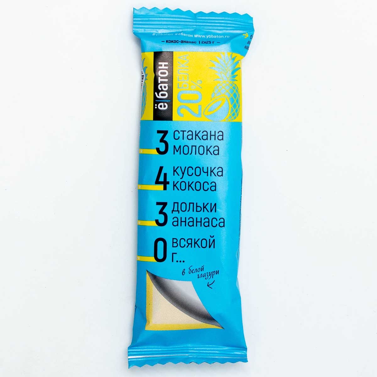 Батончик Ёбатон Кокос/ананас 20% белка в белой глазури 50г