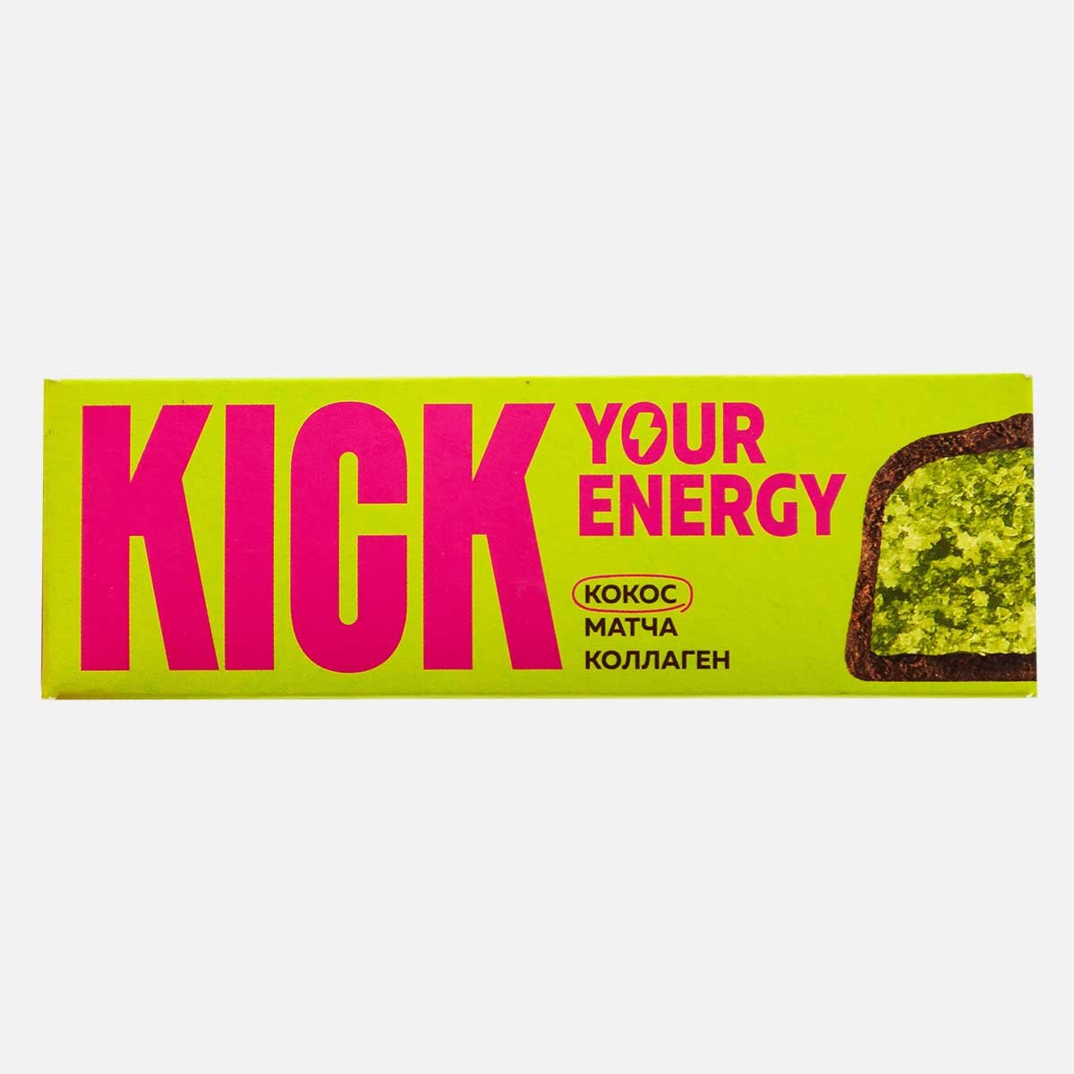 Батончик Кик Ю Энерджи кокосовый с матчей/коллагеном в карам шок 45г