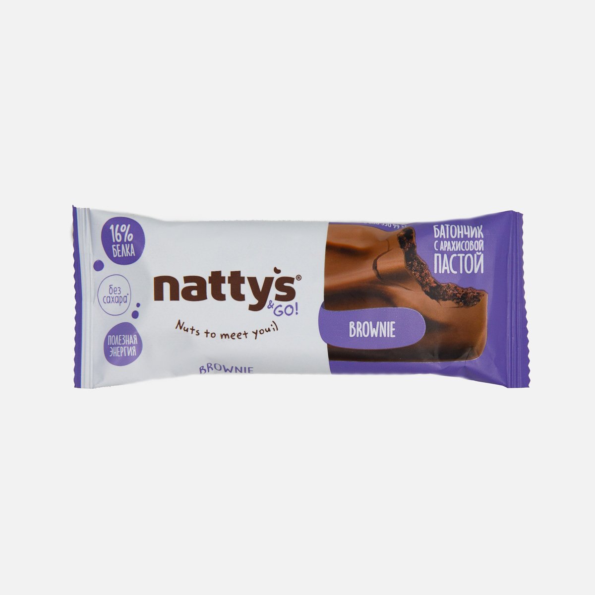 Батончик Наттис&Гоу Брауни арахис паста/какао в мол шокол 45г