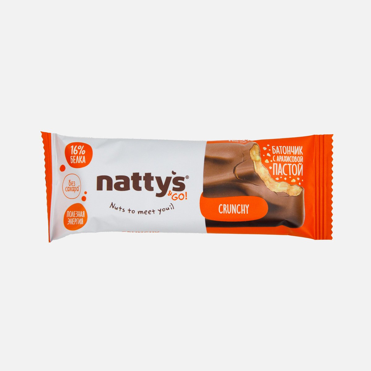 Батончик Наттис&Гоу Кранчи с арахисовой пастой в мол шокол 45г