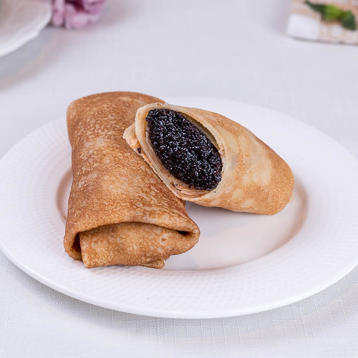 Для блинов: мука пшеничная в/с, яйцо куриное, вода питьевая, сахар-песок, соль поваренная пищевая, масло подсолнечное, молоко, масло сливочное. Для начинки: мак пищевой.