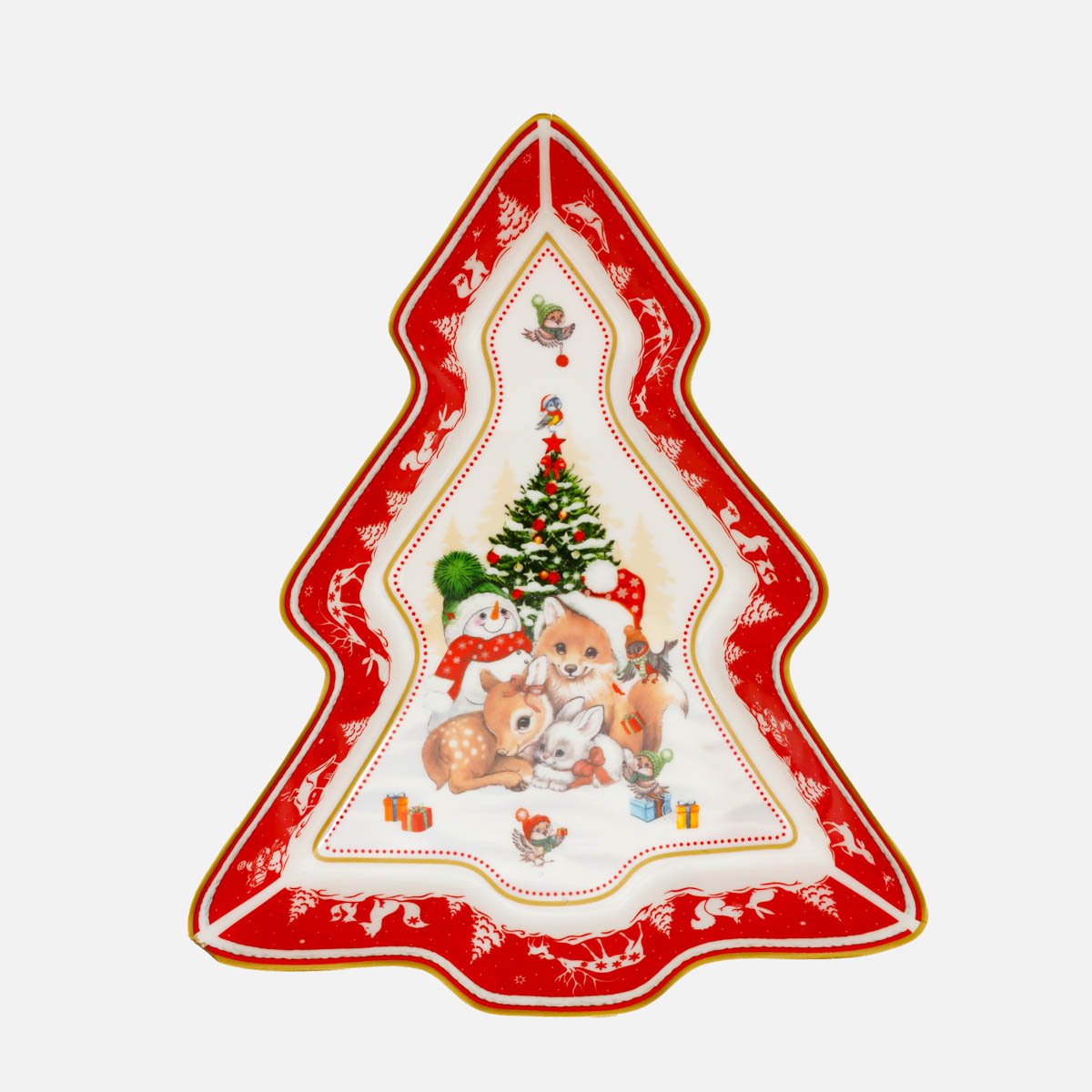 Блюдо Лефард С Новым годом в форме Елки красное 25х21х4см фарфор