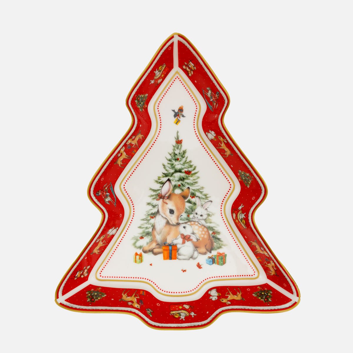 Блюдо Лефард С Новым годом в форме Елки красное 25х21х4см фарфор