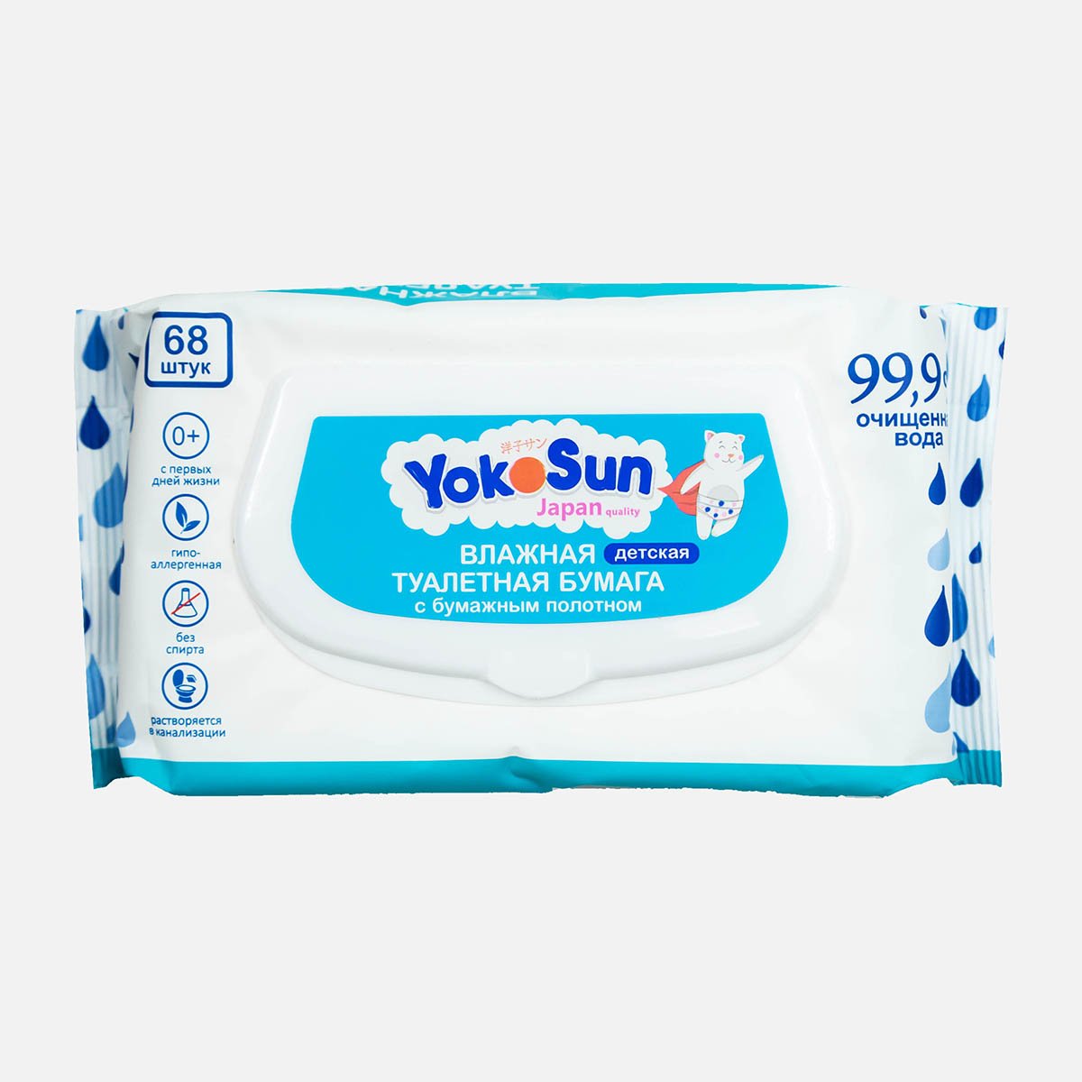 Бумага туалетная Йокосан влажная детская 68шт