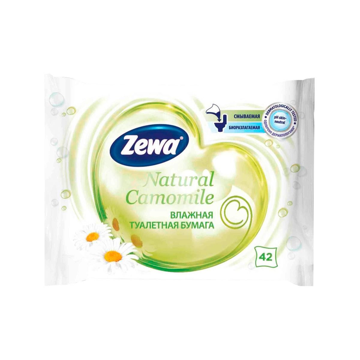 Влажная туалетная бумага "Зева" с ароматом ромашки.
