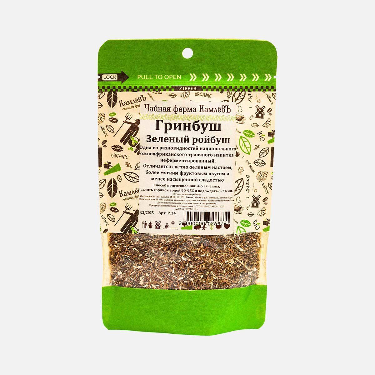 Чай Чайная Ферма КамлевЪ Ройбуш Гринбуш зеленый 50г