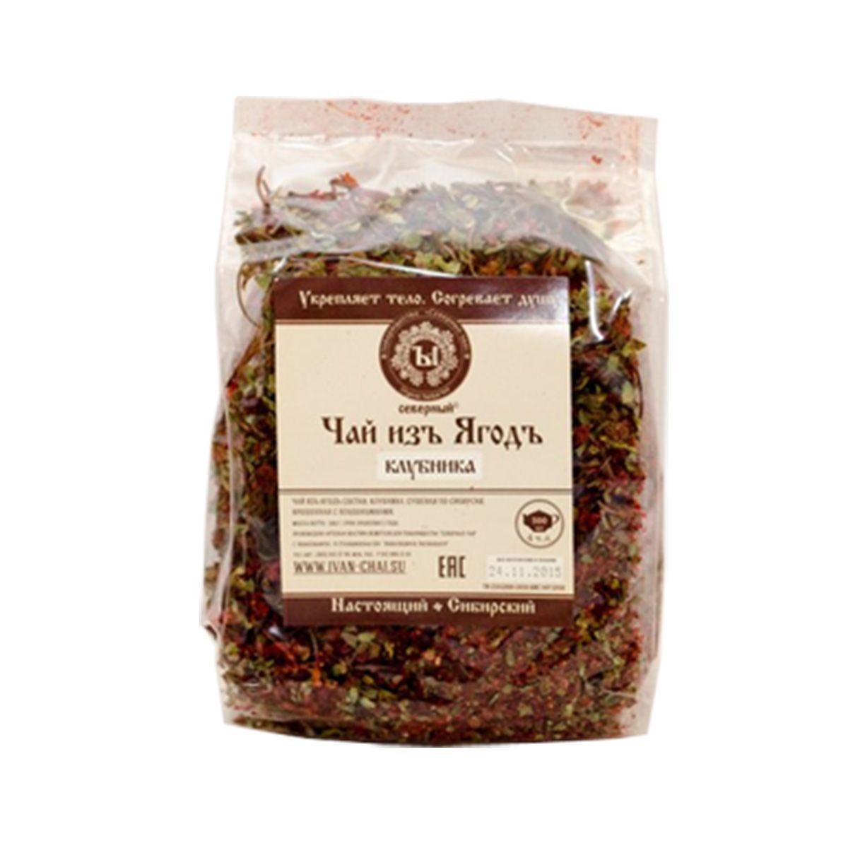 Чай из ягод - традиционный напиток сибиряков, рекомендован к употреблению ежедневно с ноября по июнь включительно. Естественный витаминный напиток полностью компенсирует отсутствие свежих овощей и фруктов в течение долгой сибирской зимы и дающий силы организму весной. Производится из крошки лесной клубники, сушеной по-сибирски. Сушка по-сибирски – «сушка на каменке» - древняя технология вакуумной сушки на дровах. Заваривается как обычный чай, употребляется без сахара.