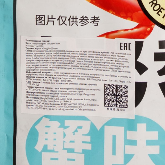 Чипсы Дандзя со вкусом краба с водорослями 200г