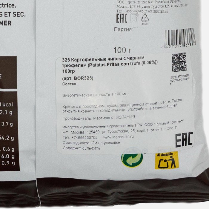 Чипсы Мартирело картофельные с черным трюфелем 100г