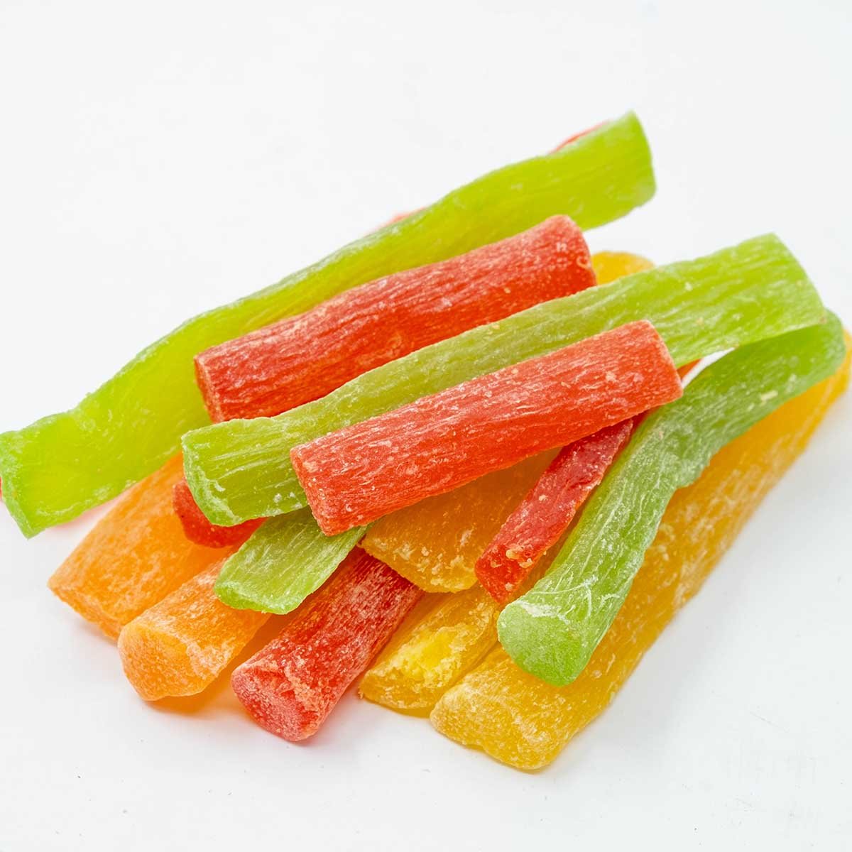 Ананас сушеный, сахар, регулятор кислотности Е330, консервант Е220, красители (Е 102, Е122, Е124, Е 133).