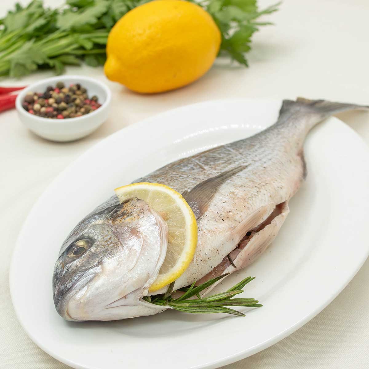 Дорадо, масло растительное, розмарин, соль, перец черный молотый. Произведено из мороженого сырья
