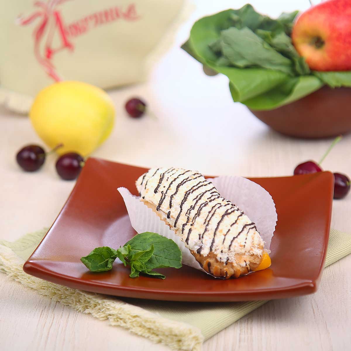 Эклер с белковым кремом – это лёгкость и насыщенность в одном десерте. Воздушное тесто, приготовленное из муки, яиц и сливочного масла, наполнено густым белковым кремом с нотками лимонной кислоты, которые подчёркивают его сладость. Покрытие из крема с какао создаёт аппетитный шоколадный акцент, идеально завершая вкус. Этот десерт – выбор для тех, кто ценит гармонию текстур и тонкий аромат, а доставка сохранит его свежесть.