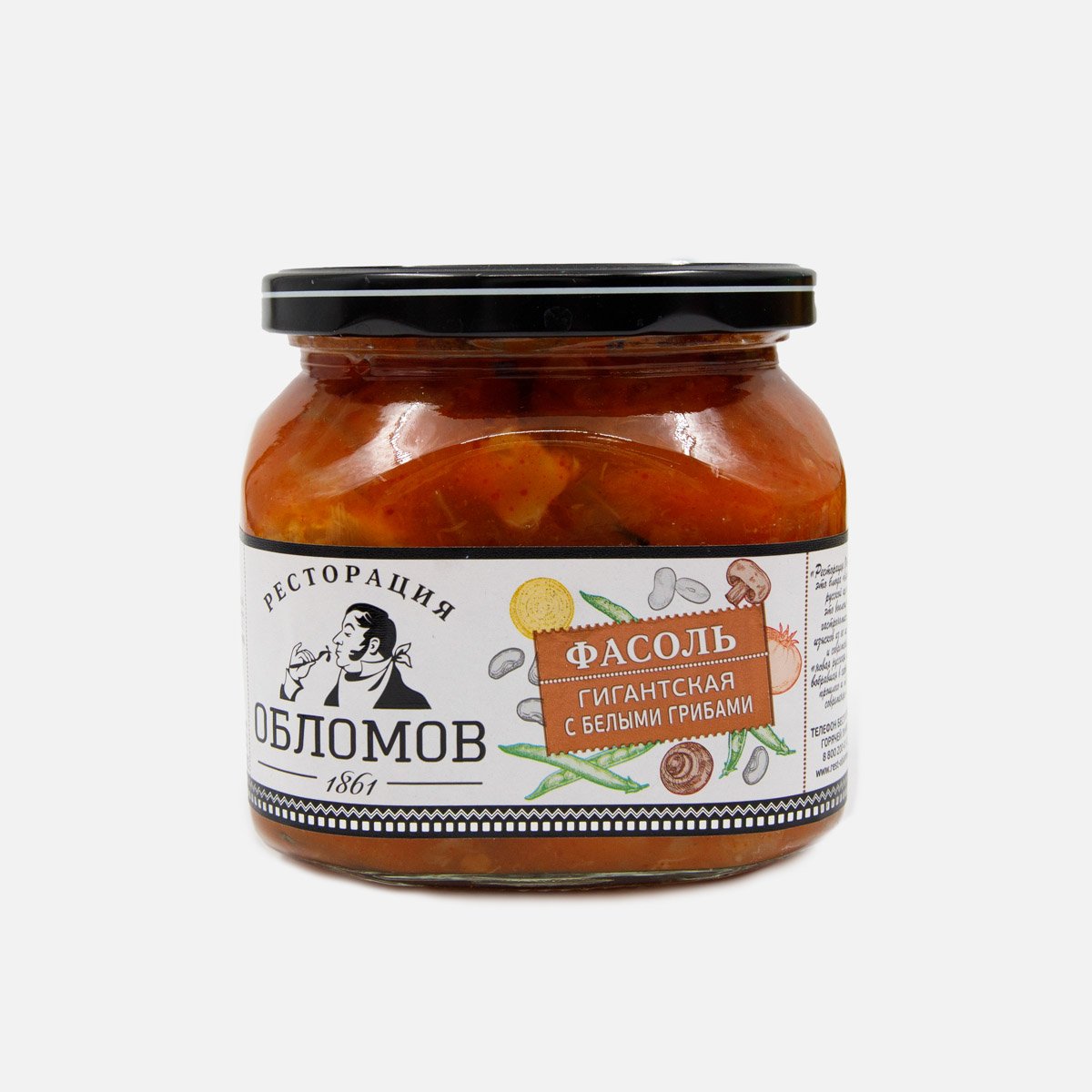 Фасоль Ресторация Обломов гигантская с белыми грибами 430г