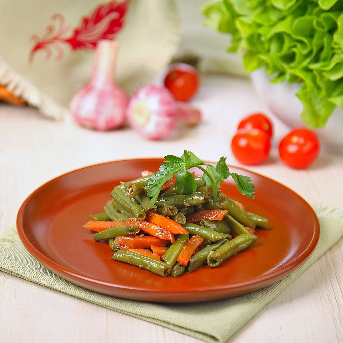 Фасоль стручковая, морковь, соевый соус, масло подсолнечное, чеснок, соль.