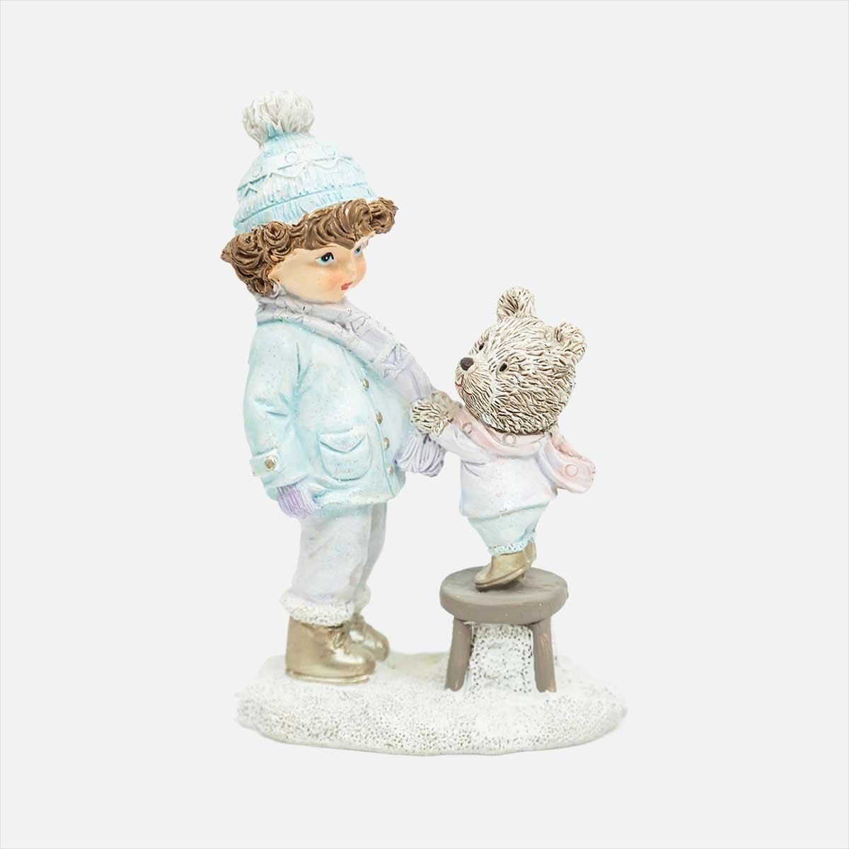 Фигурка декоративная Мальчик и медвежонок L9 W5 H13,5см полимер