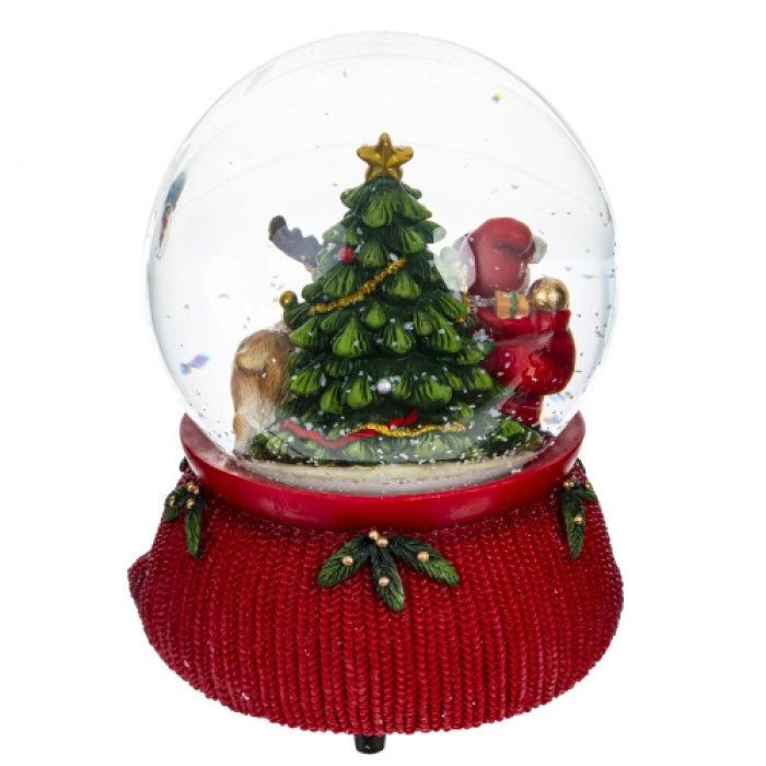 Фигурка Санта музыка в стек шаре D 10см L11 W11 H15см полимер 781514