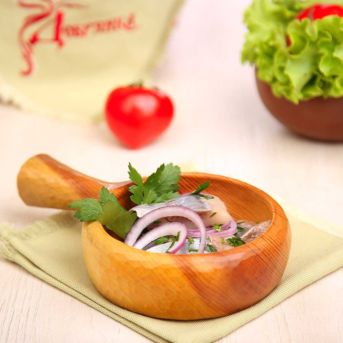 Филе сельди, лук репчатый белый и красный, зелень петрушки, масло подсолнечное