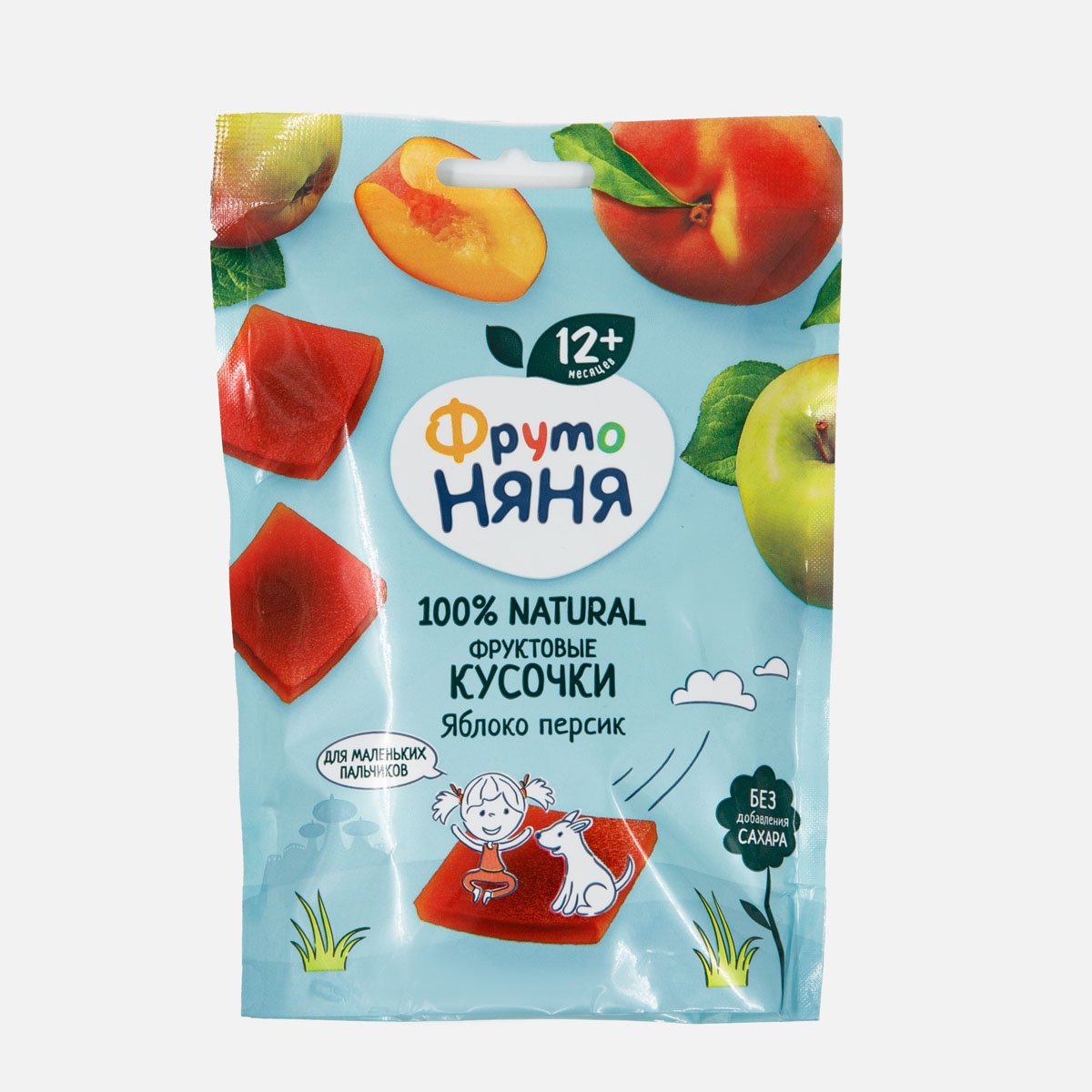 Фруктовые кусочки ФрутоНяня Яблоко/Персик б/сах 12мес 53г
