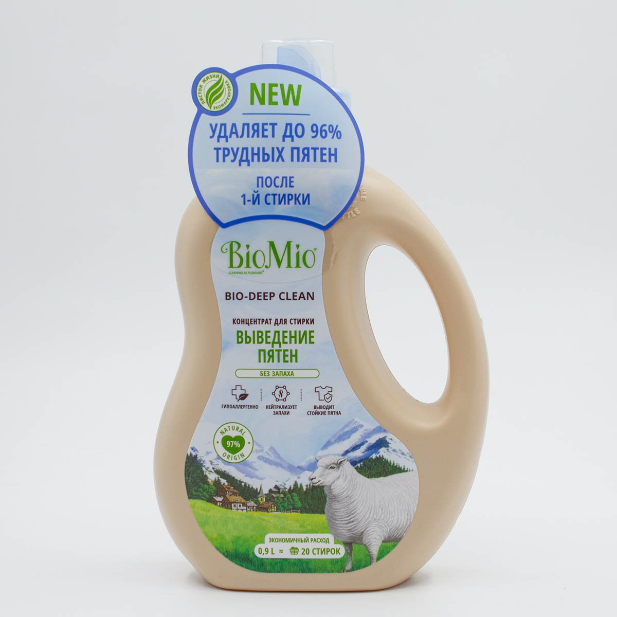Гель БиоМио д/стирки б/запаха с пятновыводителем 900мл