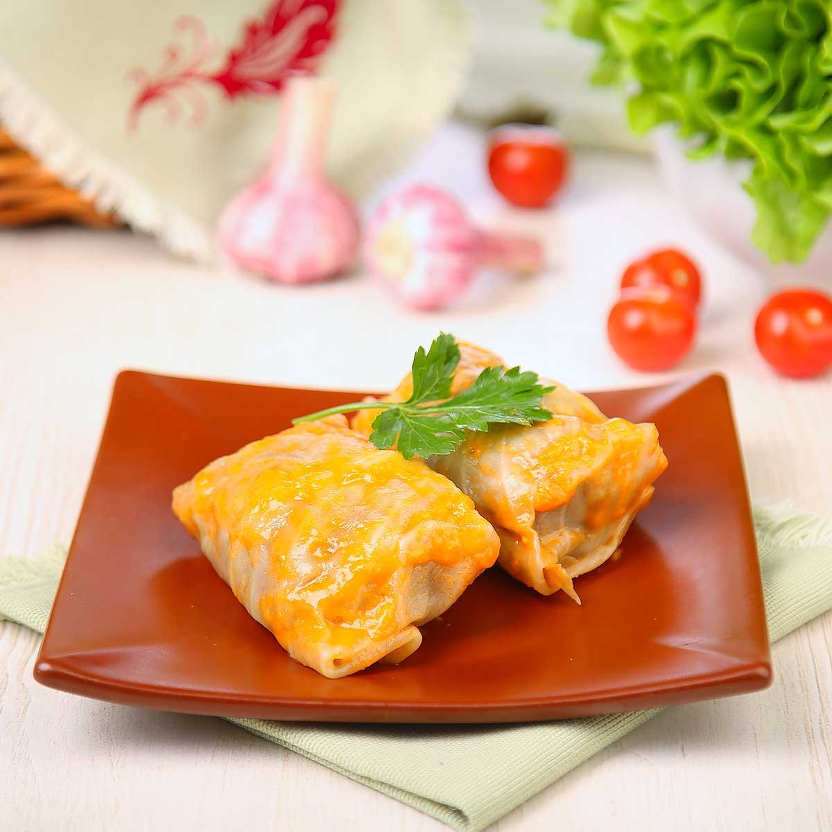 Ощутите царский вкус с нашими Голубцами Государевыми. Белокочанная капуста нежно обволакивает сочную начинку из говядины и свинины, смешанных с луком, рисом и тертой морковью. Томатная паста придаёт блюду насыщенный вкус, а корень сельдерея, чеснок и лавровый лист делают его по-настоящему ароматным. Все специи – от черного перца горошком до соли и сахара – идеально сбалансированы, чтобы подчеркнуть каждый ингредиент. Эти голубцы наполнят ваш день уютом и вкусом настоящей домашней кухни. Закажите с доставкой и наслаждайтесь блюдом прямо у себя дома.