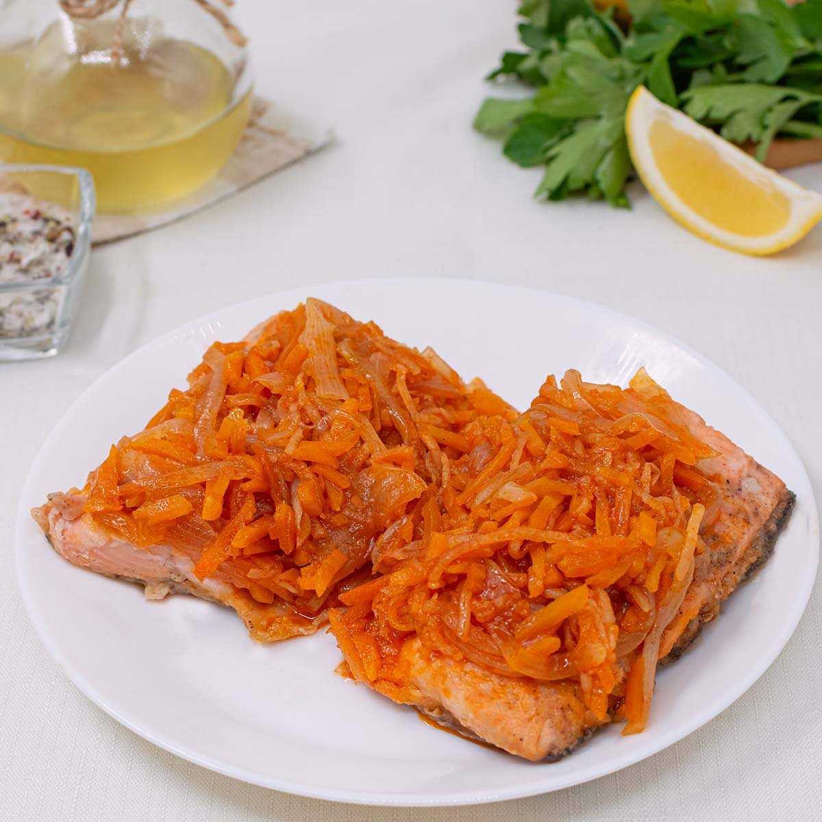 Нежная горбуша под оригинальным морковным маринадом с добавлением корня сельдерея и душистых специй. Сочные кисло-сладкие овощи напитывают нейтральную рыбу и придают ей новые вкусовые грани. Тот самый случай, когда из привычных доступных ингредиентов рождается настоящий кулинарный шедевр.