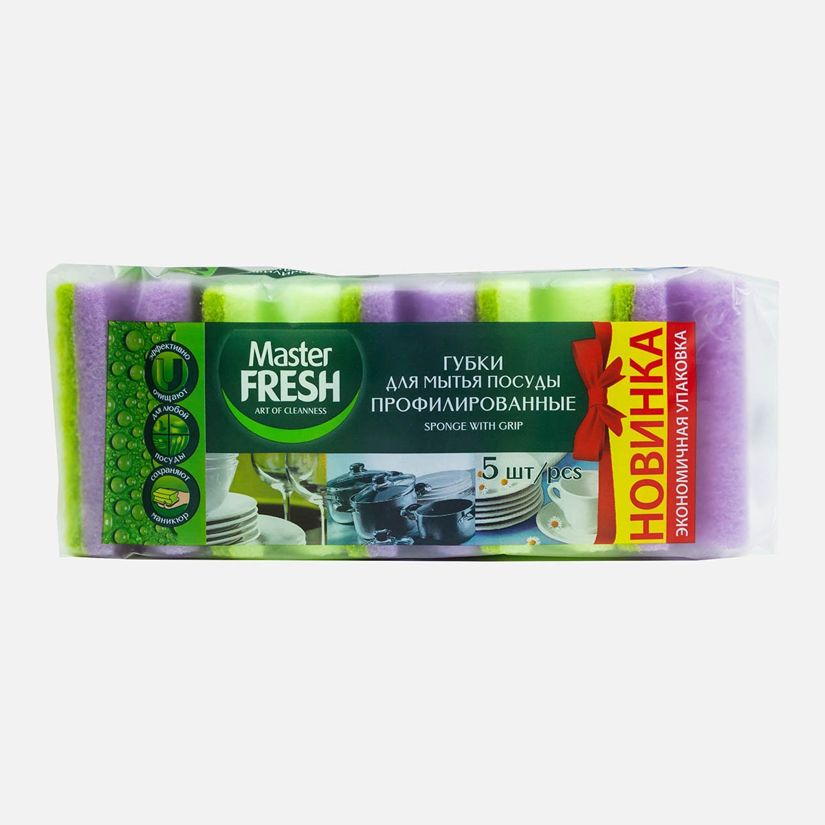 Губки Мастер Фреш д/мытья посуды профилирован микс 5шт поролон6*20*8