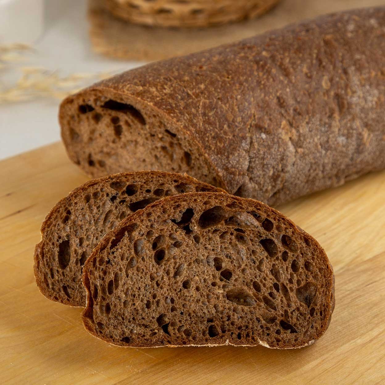 Выпекается из наиболее полезной ржаной муки. Отличается высоким содержанием клетчатки и витаминов группы В. Ядро конопли - источник Омега-3 и Омега-6 кислот, растительного белка.