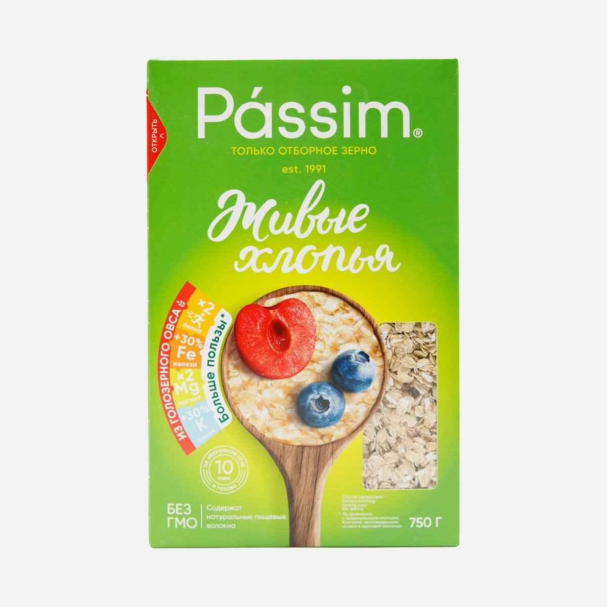 Хлопья Пассим Живые из голозерного овса к/к 750г