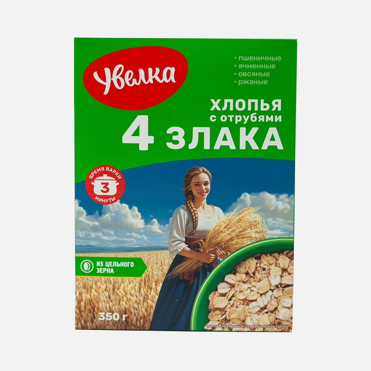 Хлопья Увелка 4злака с пшеничными отрубями к/к 350г