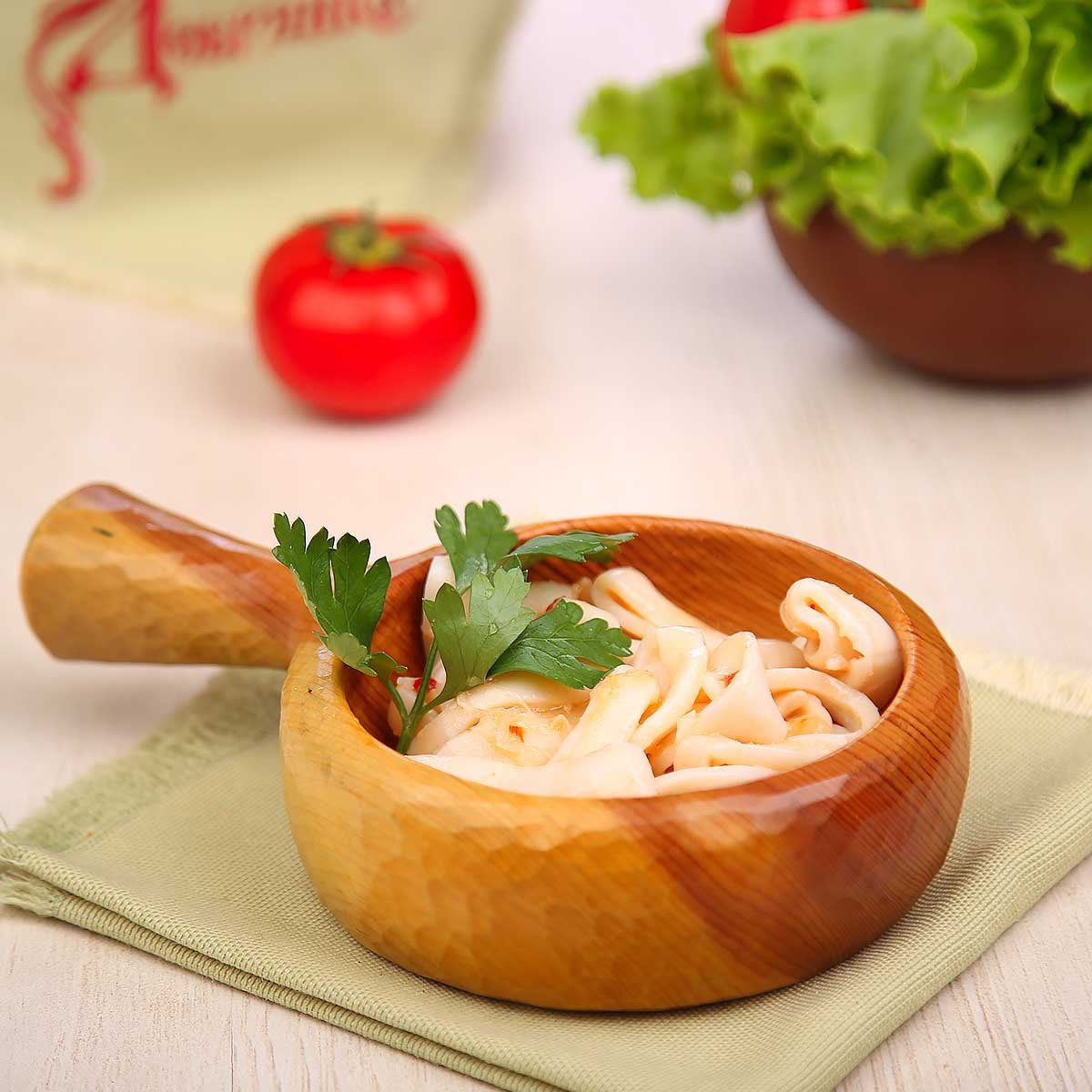 Кальмар с/м, чеснок, масло подсолнечное, лимон, соус чили сладкий, соль.