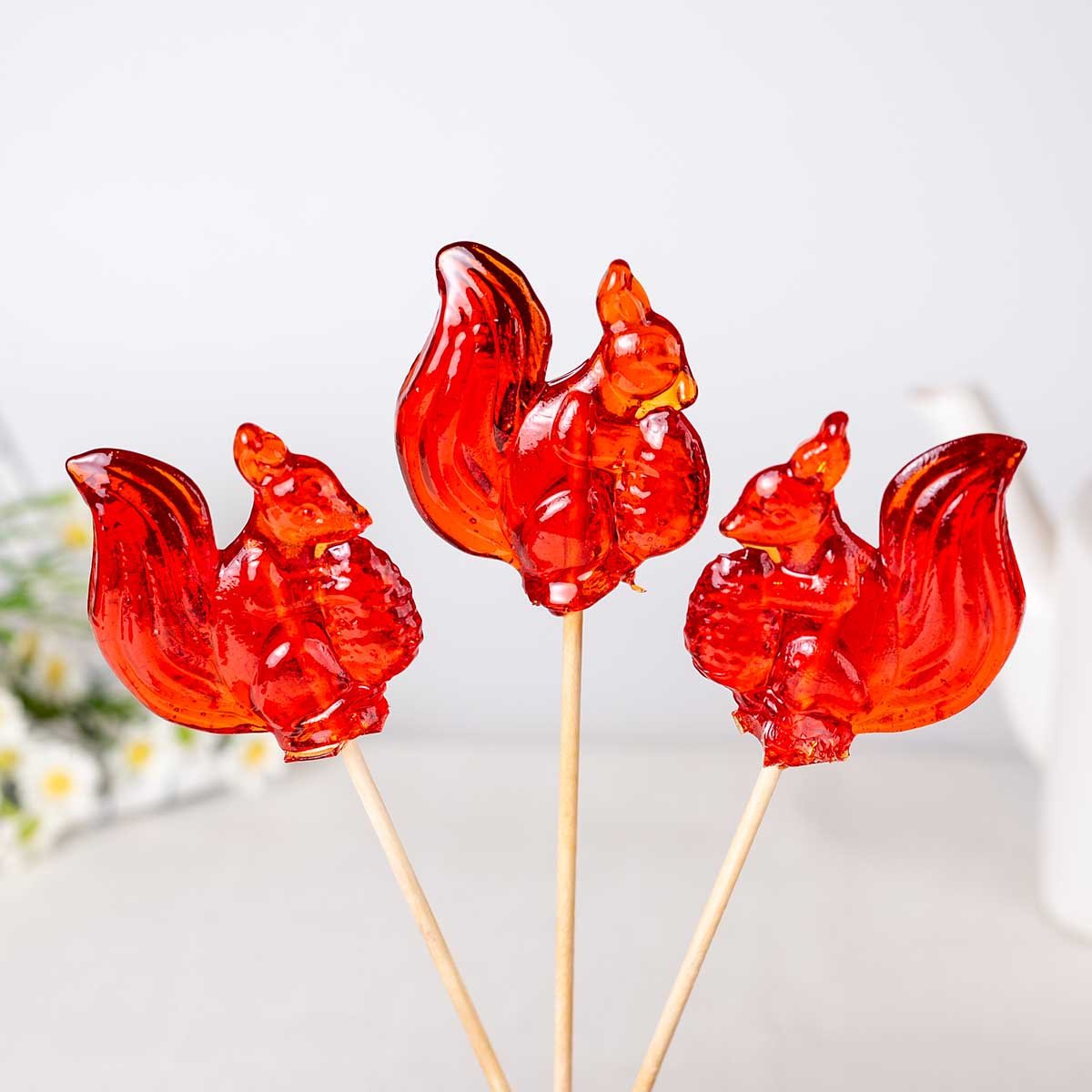 При изготовлении изделий из карамели используются несъедобные детали (деревянные палочки). Сахар-песок, сок Яблоко, патока крахмальная, кислота уксусная, краситель пищевой.