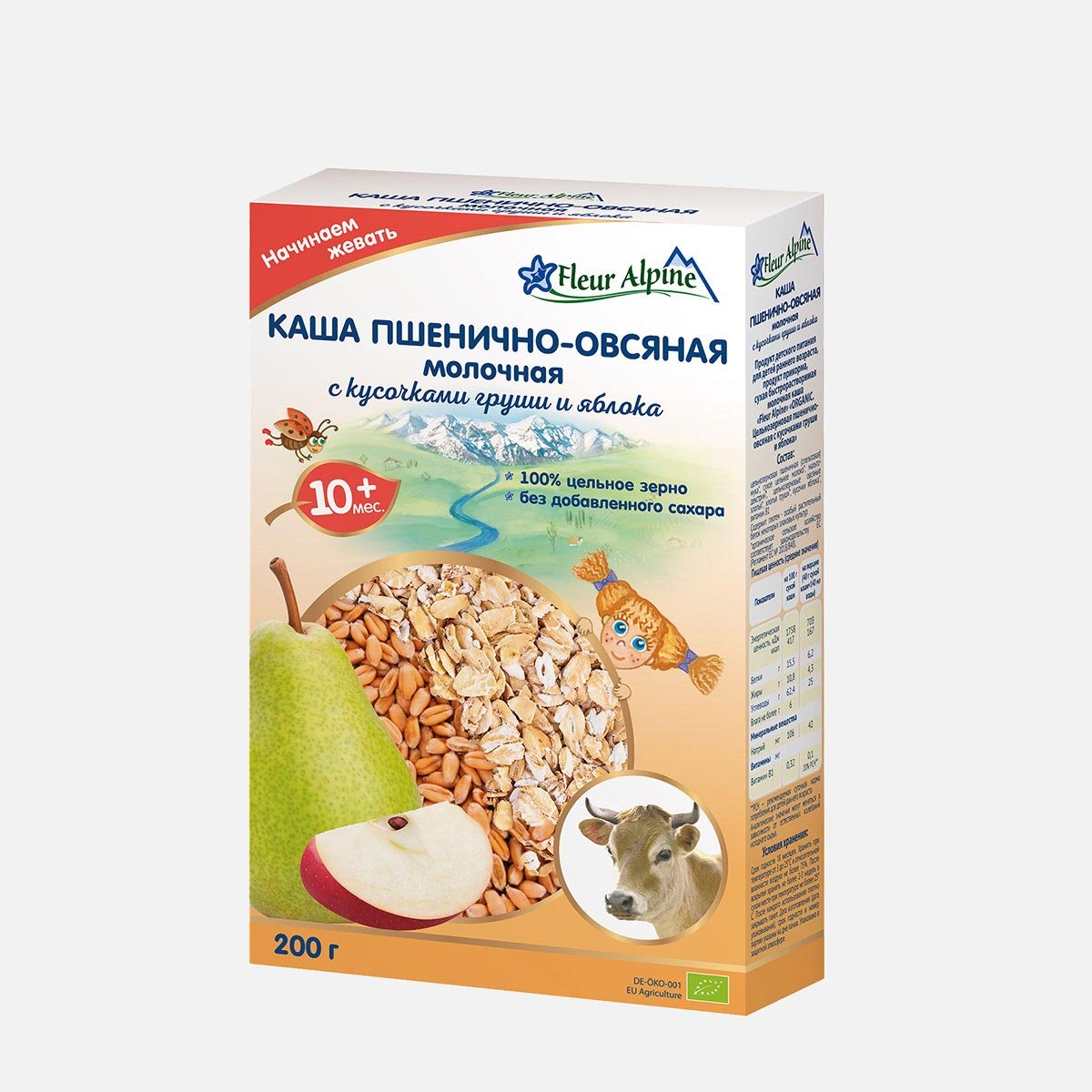 Каша Флер Альпин Органик молочная Пшенично-овсяная груша/яблоко 200г