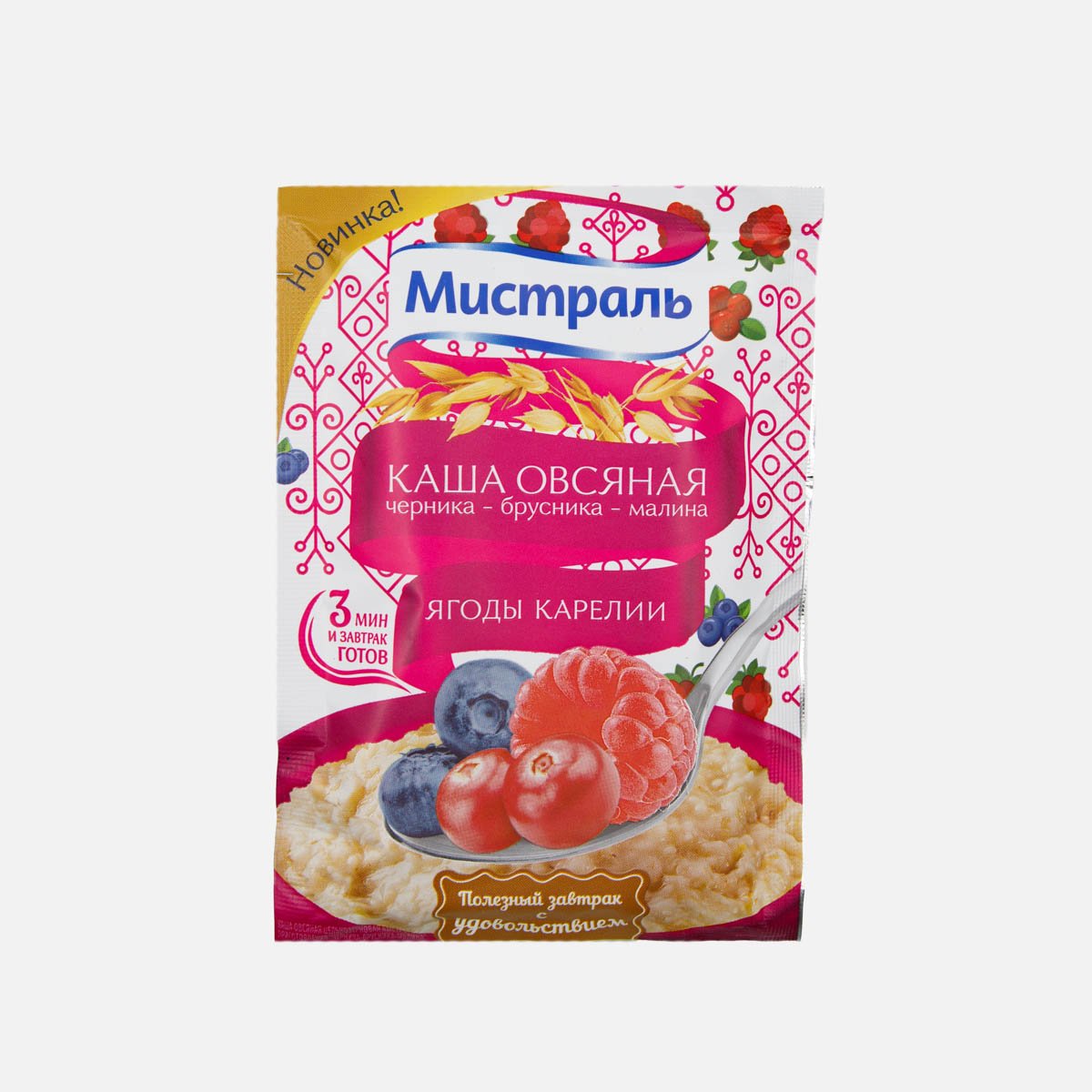Каша Мистраль овсяная чер-брус-мал Ягоды Карелии цельнозерн пл/уп 40г