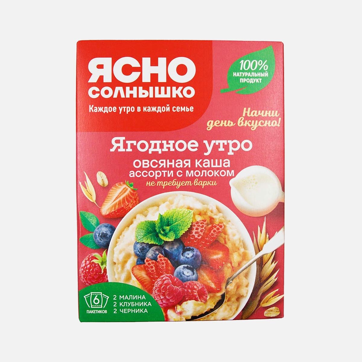 Каша Ясно солнышко овсяная Ягодное утро ассорти с молоком 240г