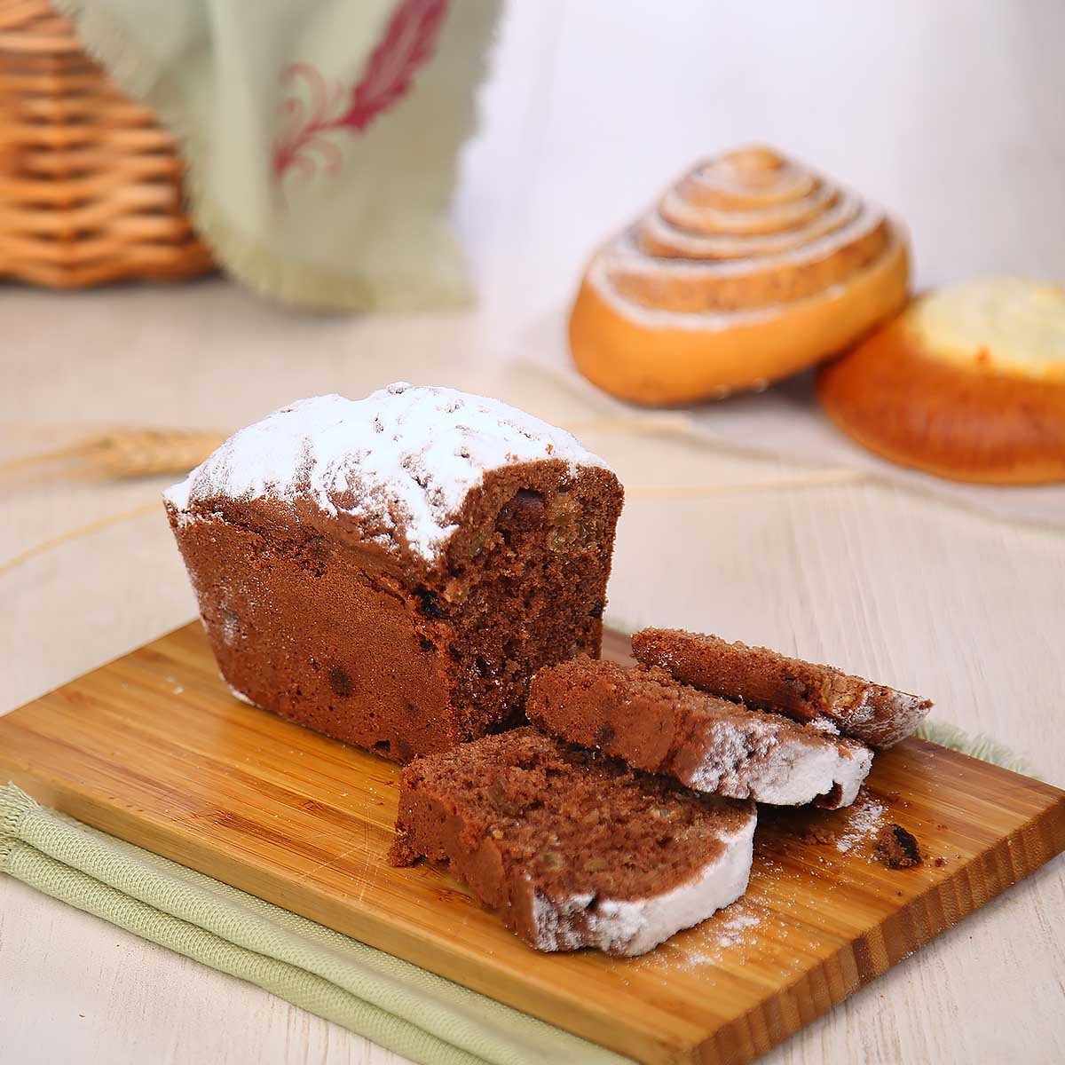 Мука пшеничная в/с, сахар, масло сливочное, яйцо куриное, изюм, какао-порошок, масло подсолнечное, сахарная пудра, соль, сода.