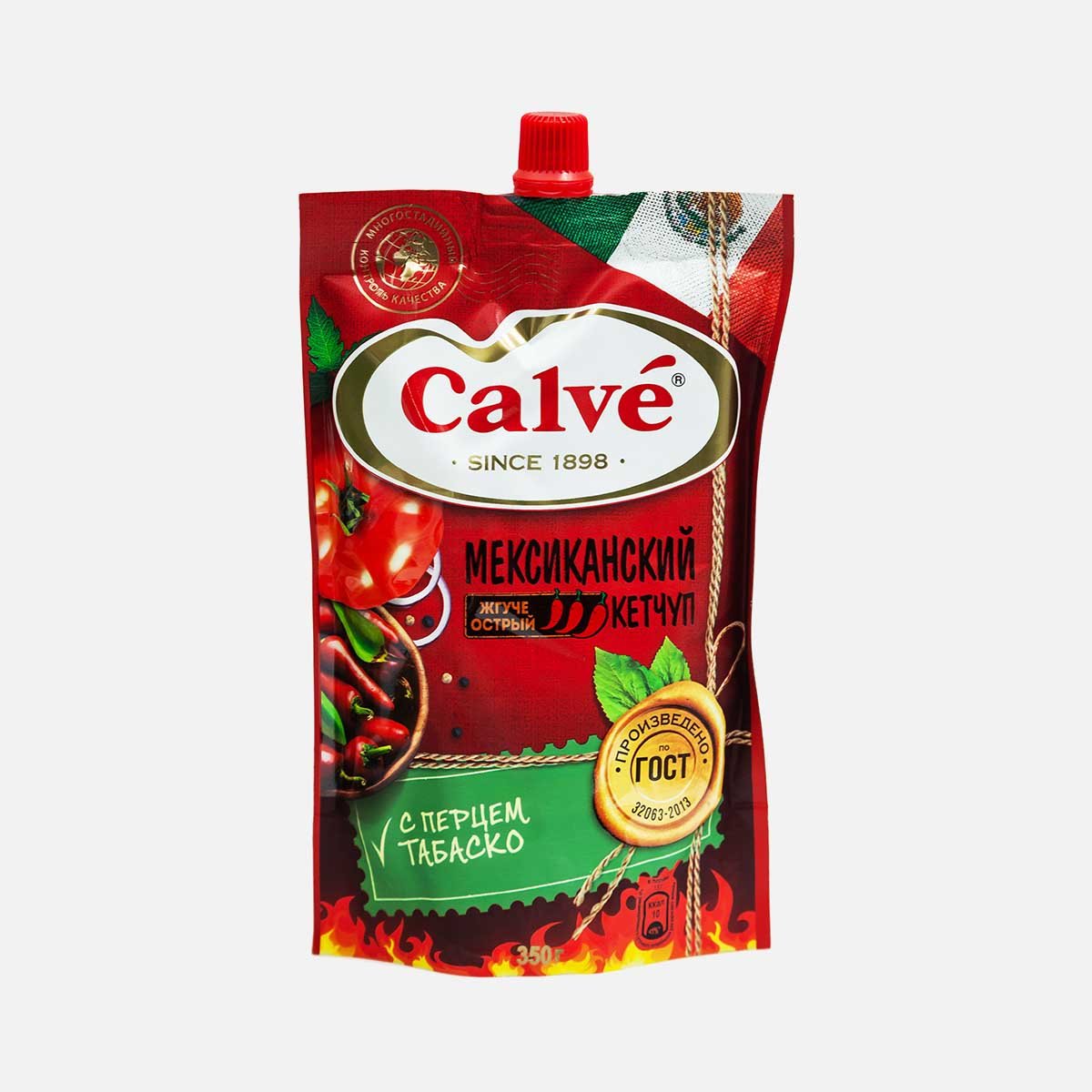 Кетчуп Кальве Мексиканский с перцем табаско жгучий д/п 350г