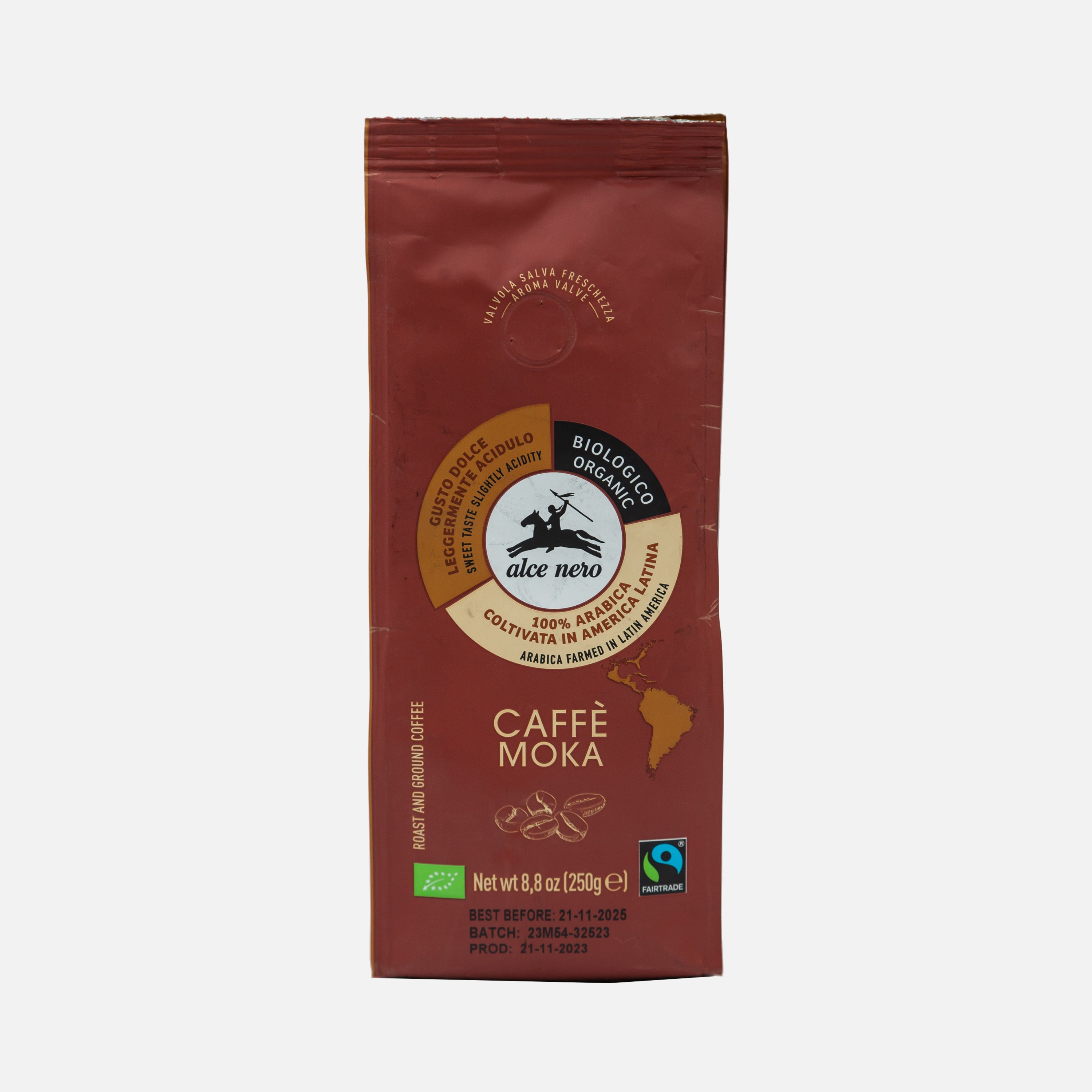 Кофе Альче Неро Арабика Натур жареный молотый био в/у 250г