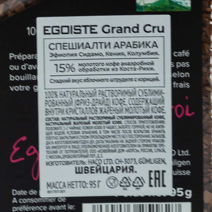Кофе Эгоист Гранд Крю раст с добав молот ст/б 95г