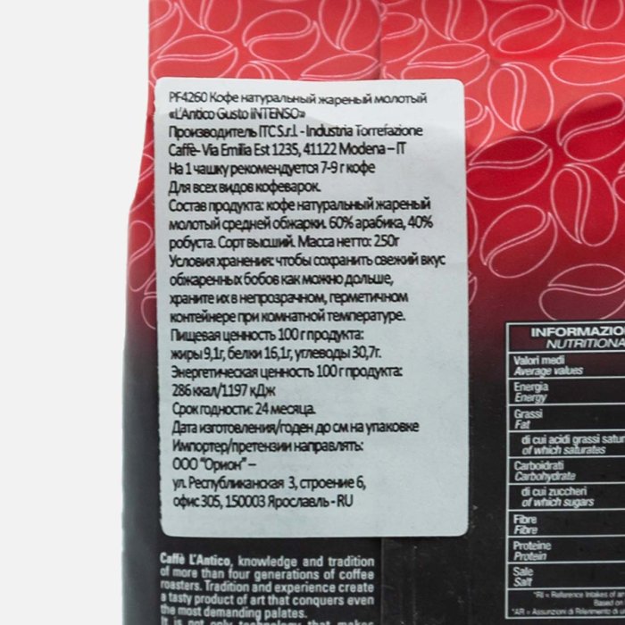 Кофе Каффе Лантико Густо Интесо молотый м/у 250г