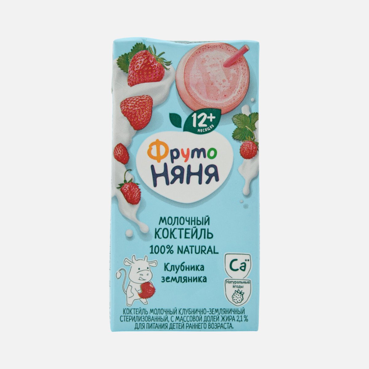 Коктейль ФрутоНяня молочный клубнично-землянич 2.1% т/п 200мл