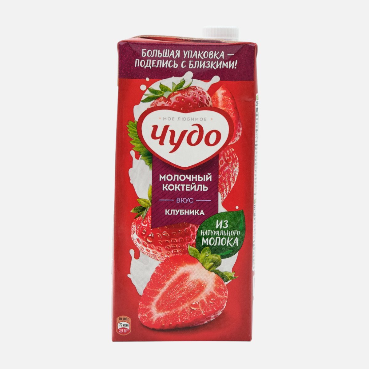 Клубничный молочный коктейль "Чудо" 2% жирности.