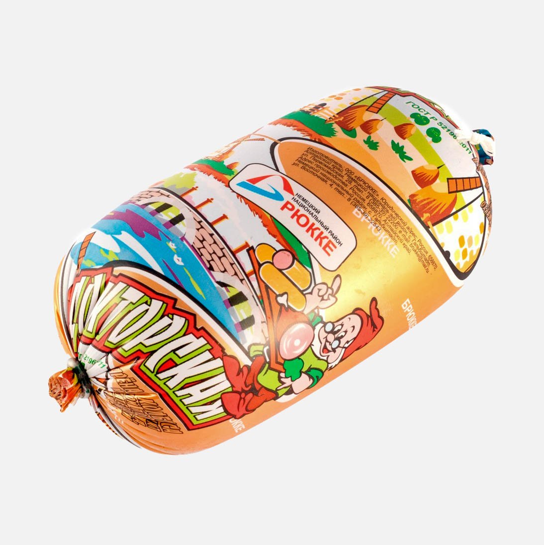 Вареная колбаса с пониженным содержанием жиров из фарша говядины (25%) и свинины (70%).