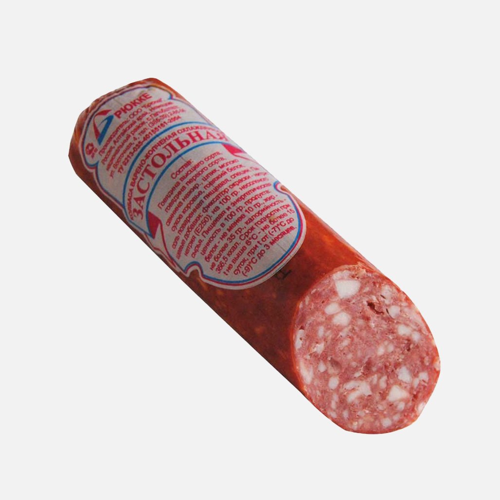 Говядина, свинина, шпик хребт, вода питьевая, молоко сухое, нитритно-посолочная смесь, смесь натуральных специй, альбумин.
