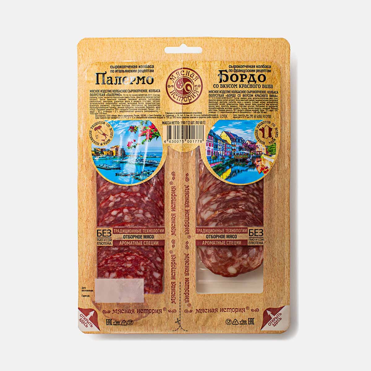 Колбаса Мясная история Палермо/ Бордо с/к нарезка м/а 100г