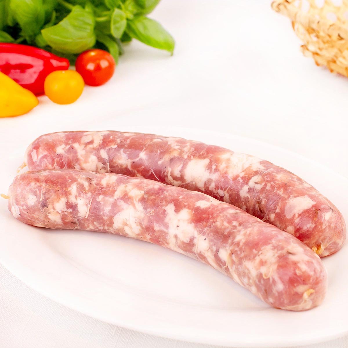 Мясо свинина, грудинка свиная, минеральная вода, чеснок, соль, черева свиная метр, масло подсолнечное, специи Тмин, перец черный молотый.