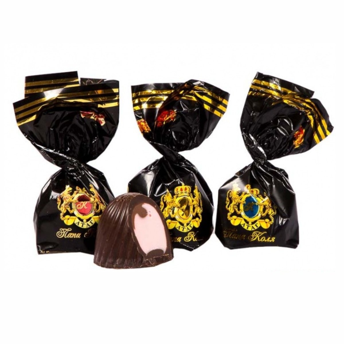 Кондитерская глазурь (сахарная пудра, кокосовое масло, заменитель какао-масла, какао-порошок, сухое цельное молоко, сыворотка молочная), вафельная крошка, фундук, эмульгатор-лецитин, ароматизатор идентичный натуральному-ванилин, натуральный ароматизатор клубника, миндаль, яблоко, банан, вишня, пищевой краситель (акванат хлорофил, экотон кармин).