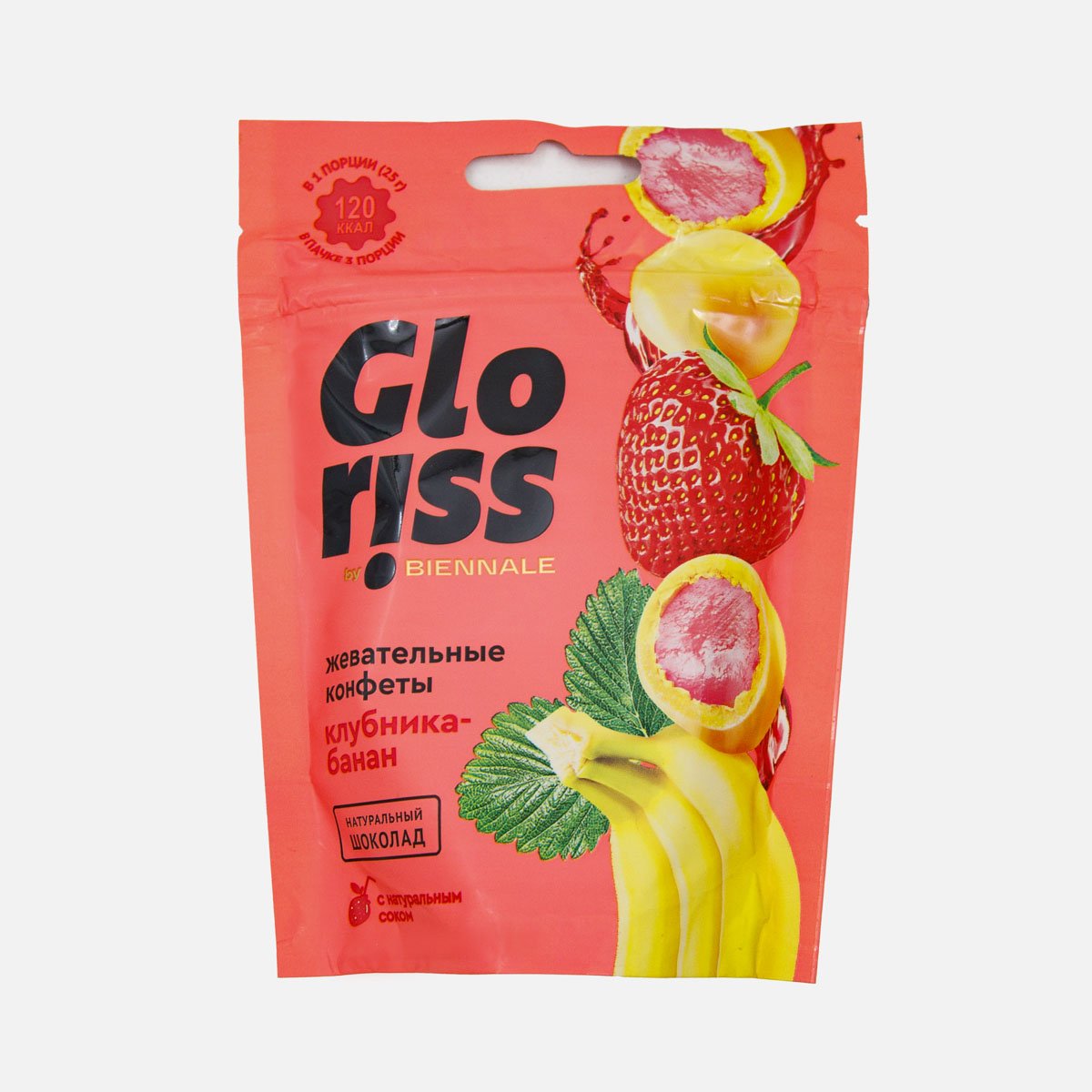 Конфеты Глорисс в шоколаде жевател со вкус клубника-банан 75г