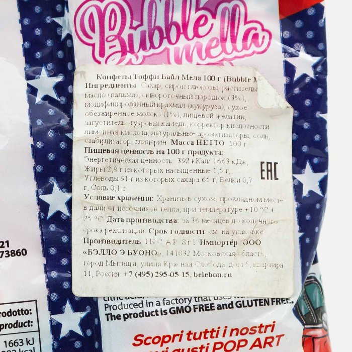 Конфеты Инкап ПопАрт Тоффи Бабл Мела без глютена 100г